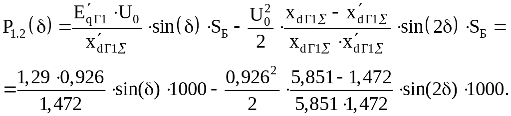 Полагая сопротивление нагрузки неизменным, определим действительный предел мощности генераторов Г1 при включенном АРВ ПД без учета активных сопротивлений элементов системы и зарядной мощности ЛЭП и сравним его с идеальным пределом мощности.