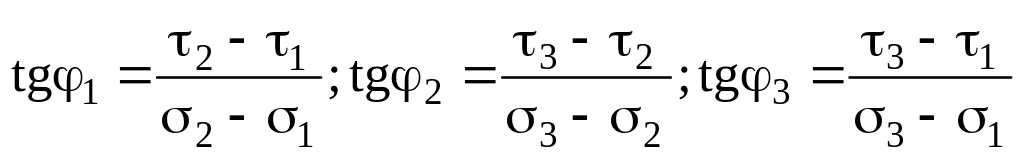 Значення коефіцієнту внутрішнього тертя tgφ вираховується для кожної пари визначень по формулам: