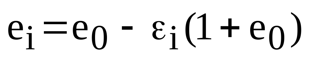 Знаходять коефіцієнт пористості еі грунту на кожній ступені навантаження за формулою: