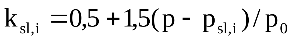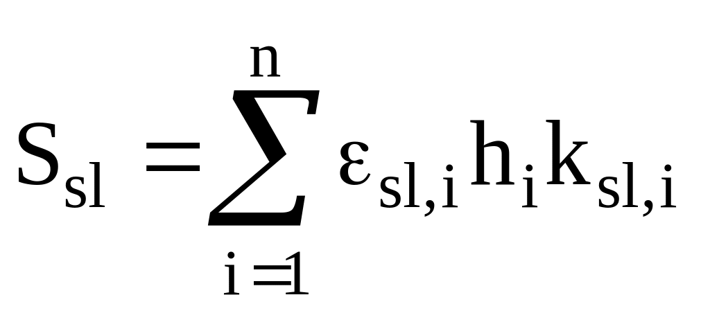 де: n – кількість елементарних шарів, на які поділена просадочна товща (зона просідання); sl,і - відносна просадочність і-го елементарного шару грунту; hі – товща і-го шару (см) (не більше 2 метрів) (∑hі = hsl); ksl,i – коефіцієнт, що приймається: