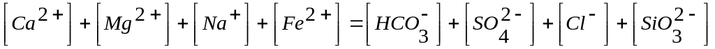 Вода електронейтральна, тому суми концентрацій катіонів і аніонів, виражені в мг-екв/дм3, мають бути рівні: