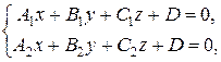Если две плоскости заданы общими уравнениями A1x + B1y + C1z + D1 = 0и A2x + B2y + C2z + D2 = 0, то: