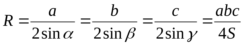Теорема синусов. Во всяком треугольнике отношение стороны к синусу противолежащего угла есть постоянная величина, равная диаметру описанной около треугольника окружности, т.е.