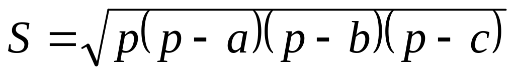 Для вычисления площади произвольного треугольника используют следующие формулы: