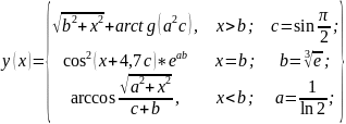 Скласти схему алгоритму і програму для обчислення функцій. Вхідні дані вводяться із клавіатури.