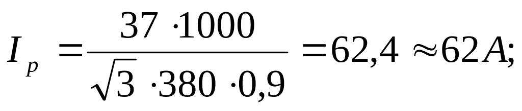 по формуле (28) определяем расчетный ток кабельной линии при Uл1 = 380 В