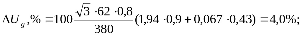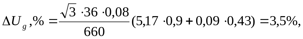 Потеря напряжения линии, выполненной кабелем с таким сечением, будет