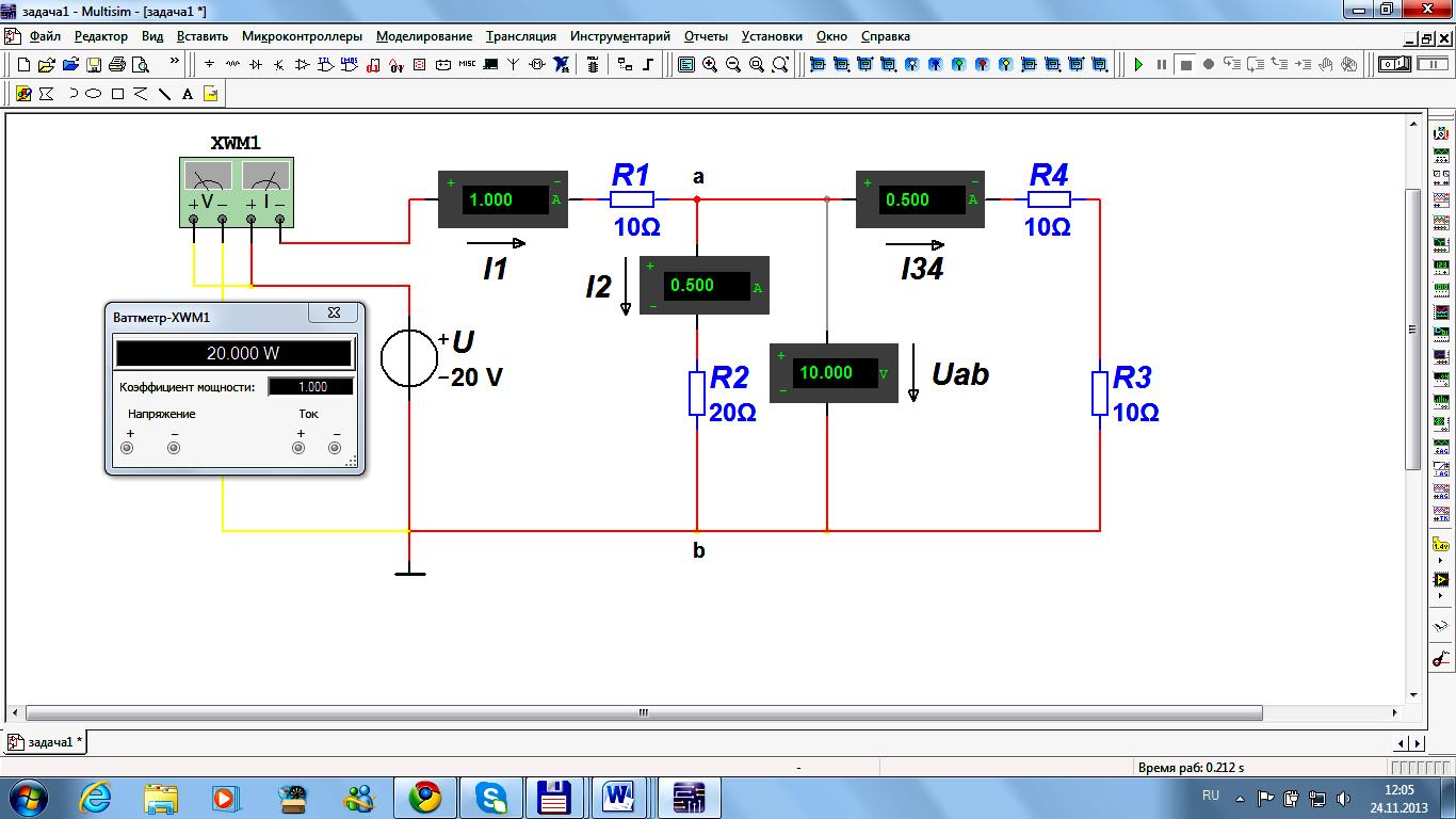 Проверим правильность решения задачи, осуществив моделирование работы схемы в среде Multisim (рисунок 1.2).