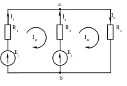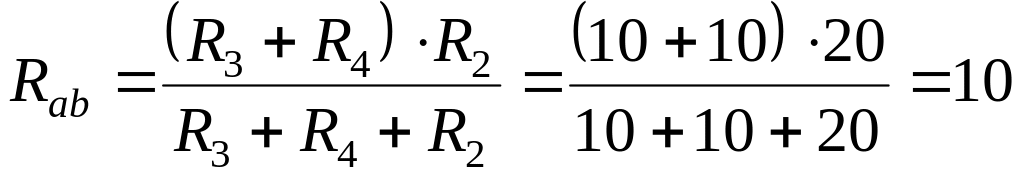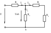 Определим эквивалентное сопротивление схемы между узлами a и b: