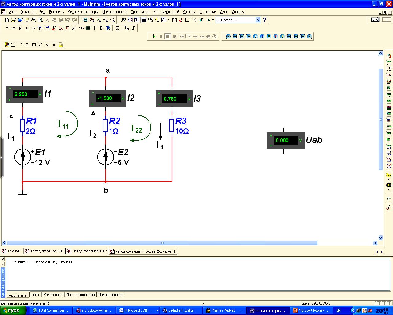 Рисунок 1.4 – Решение системы уравнений по законам Кирхгофа