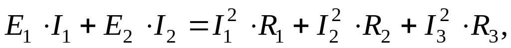 Определить токи в ветвях схемы (рисунок 1.3), если ЭДС источников Е1 = 12 В, Е2 = 6 В, внутренние сопротивления источников R1 = 2 Ом, R2 = 1 Ом, а сопротивление нагрузки R3 = 10 Ом. Проверить правильность расчёта по балансу мощностей.