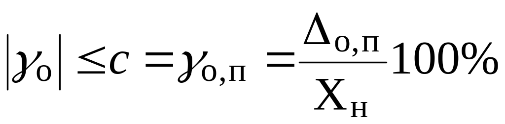 где γо,п – предел допускаемой основной приведенной погрешности, Δо,п - предел допускаемой основной абсолютной погрешности, Xн – нормирующее значение. Зная Xн, из (1.30) нетрудно найти Δо,п ≥ |Δо|, где Δо – основная абсолютная погрешность средства измерений.