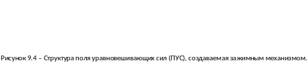 Недостатком указанного способа уравновешивания является высокий уровень энергетических затрат на закрепление. Силовые потоки, возникающие при обработке, создают напряжения скручивания и изгиба. Поэтому для увеличения жесткости заготовки ввиду ее значительной длины целесообразно применение дополнительной опоры - люнета. В таких условиях не возникает особых требований к структурной однородности силовых полей. При цилиндрической конфигурации и равномерном распределении сил резания имеется возможность огрубить структуру ПУС до локально-дискретной. При данной схеме базирования целесообразно применить закрепление заготовки в токарном патроне с установкой другого конца заготовки на люнете с целью увеличения жесткости, при этом будет создано ПУС, представленное на рисунке 10.4.
