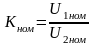 Номинальный коэффициент трансформации равен отношению номинальных первичного и вторичного напряжений: