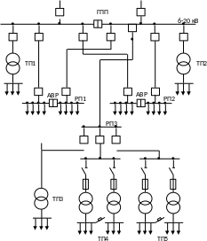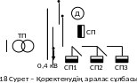25 Сурет - Өндірістік өнеркәсіптің электржабдықтауының ішкі жүйесіндегі бір жақтан қоректенулі бар сипаттық магистральды сұлбасы