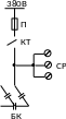 в) контактор КТ немесе магнитті жібергіш бар сақтандырғыш П (автоматты реттеу болған кезде қолданады).