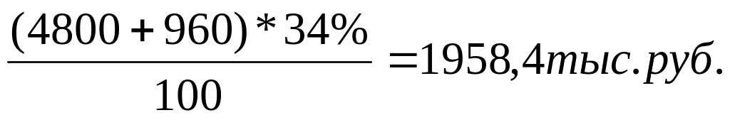 (4800+960) * 34% / 100% = 1958,4 тыс. руб.