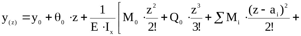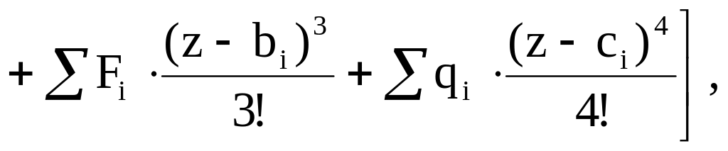 M0, Q0 – изгибающий момент, Нм, и поперечная сила, Н, в начале координат;