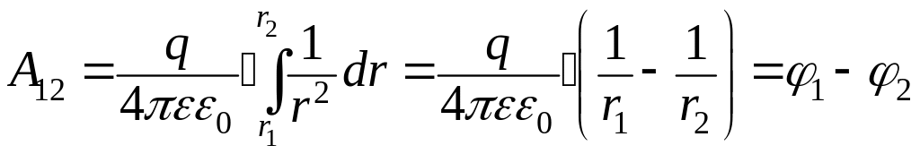 Работа сил электростатического поля при перемещении заряда из точки 1 в точку 2 не зависит от формы траектории заряда .