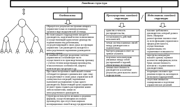 - •Организационные структуры органов управления фирмы: линейная структура, ее достоинства и недостатки
