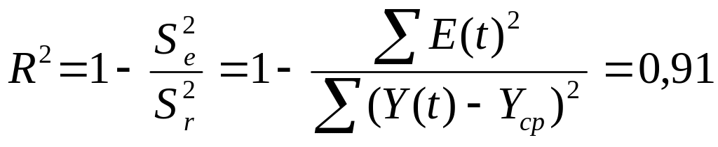 Коэффициент детерминации показывает, что более 91% вариации зависимой переменной учтено в модели и обусловлено влиянием исключенного фактора.