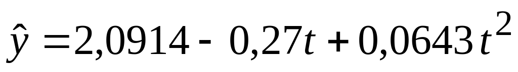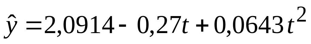 уровень значимости a: a=100%-p=5%. n=5 – число уровней ряда; m=3 – число параметров в уравнении тренда; k=n-m=2 – количество степеней свободы; ta =4,303 – табличное значение t-критерия Стьюдента. |
