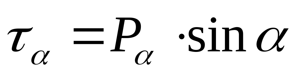 Користуючись рівнянням /14/, можна простежити за зміною значень нормального напруження на площадках, що мають різний нахил. Так, із збільшенням кута від 0 до 90° напруження σ зменшується від значення при α = 0 до нуля при α = 90°.