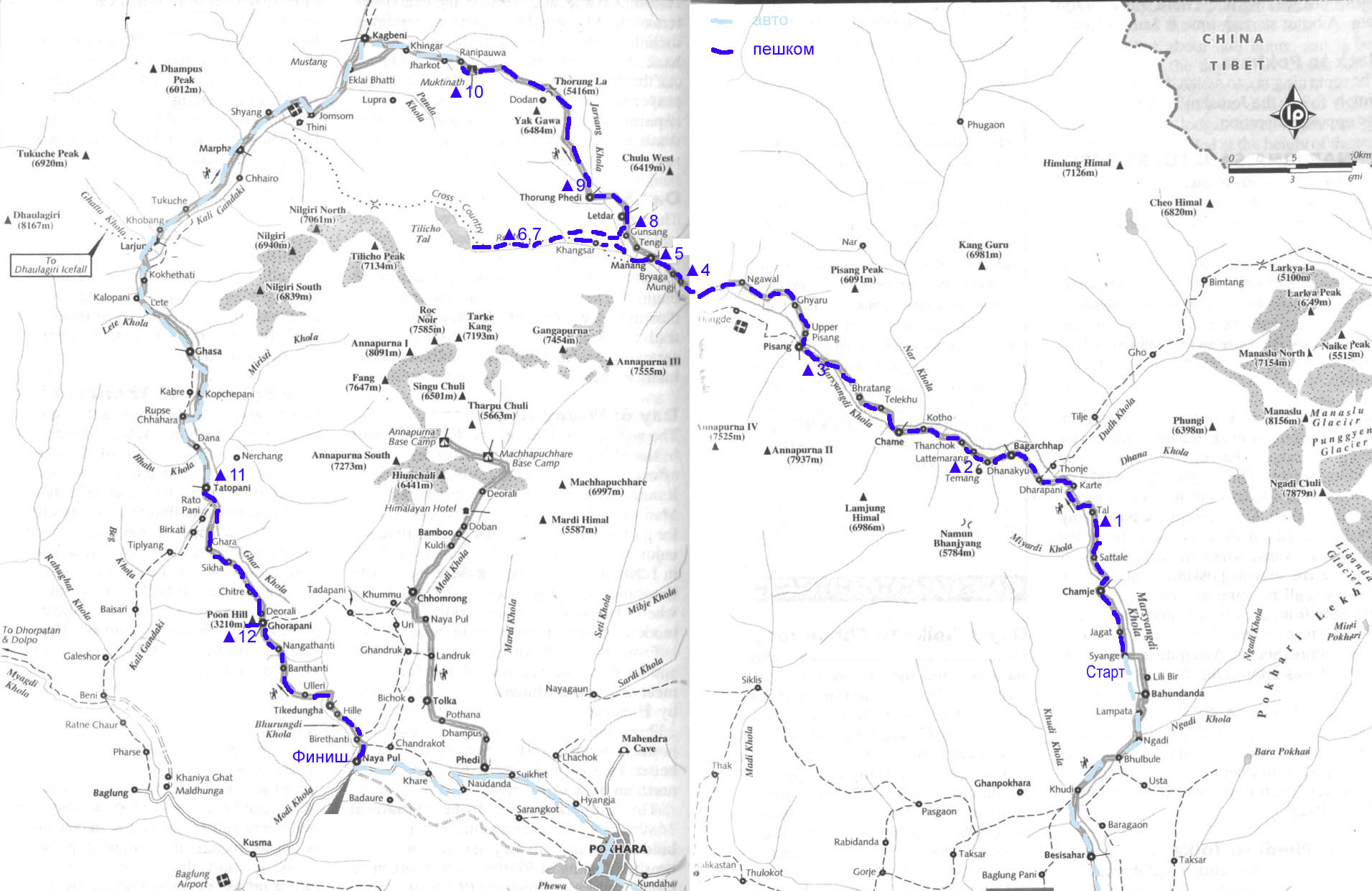 Маршрут: Челябинск – Екатеринбург (авто) – Катманду (авиа) – Бесисаар (Besi Shahar) (авто) – Сьяндж (Syange) (авто) – Тал (Tal) – Тиманг (Timang) – Чаме (Chame) – Верх. Писанг (Upper Pisang) – Нгавал (Ngaval) – Мананг (Manang) – базовый лагерь Тиличо – оз. Тиличо (Tilicho lake) (рад.) – Як-Кхарка (Yak Kharka) – Тронг-Педи – пер. Торонг-ла (Thorong la) 5416м – Муктинатх (Muktinath) – Татопани (Tatopani) (авто) – Горепани (Ghorepani) – Пун-Хилл (рад.) – Наяпул (Nayapul) – Покхара (авто) – Катманду (авто) – Екатеринбург (авиа) – Челябинск (авто).