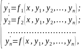 Нормальной системой дифференциальных уравнений называется система дифференциальных уравнений 1-гопорядка, разрешённых относительно производной: