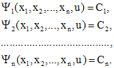 В частности, если u входит только в один из первых интегралов (2), например в последний, то общее решение можно написать в виде: