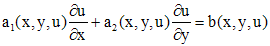 Квазилинейным уравнением в частных производных первого порядка называется уравнение вида