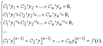 Неизвестные функции C1(x), C2(x) , ... , Cn(x) находятся из системы