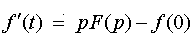 Дифференцирование оригинала. Если функции f (t), f (t) , f (t),…, f (n)(t) являются функциями-оригиналами и f(t)=F(p), то
