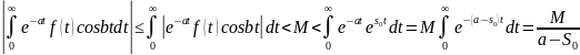 Покажем, что если функция f(t) удовлетворяет условию (1) и a>S0, то интегралы , стоящие в правой части равенства, существуют, и сходимость интегралов абсолютная.