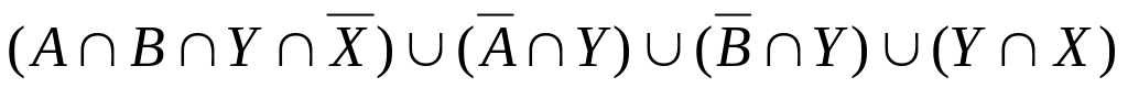 Пример. Пусть на универсуме U={a, b, c, d, e, f, g} определены множества X={a, c, d, f} и Y={b, d, e, f}, тогда