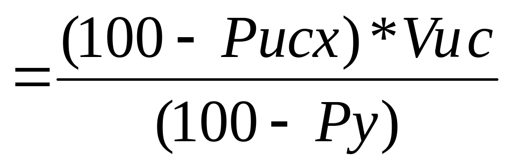 В формуле: Vисх и Vу - объем осадка до и после уплотнения соответственно, Рисх и Ру - влажность исходного и уплотненного осадка.