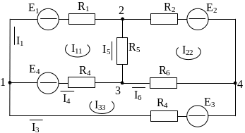 44. В цепи, показанной на рисунке, уравнение по методу контурных токов для контура «11» имеет вид: