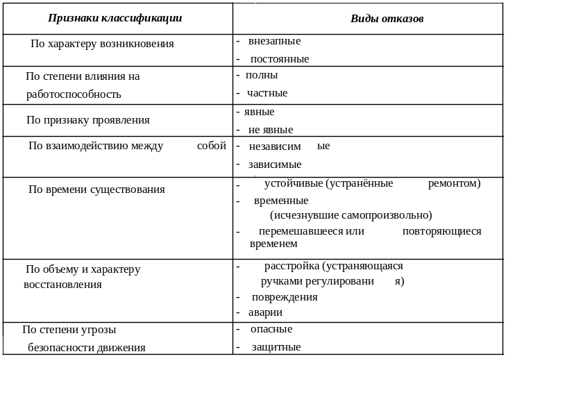 По характеру возникновению отказа можно классифицировать следующим образом: