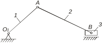 Заданий кривошипно-шатунний механізм складається з трьох рухомих ланок (1,2,3) та однієї нерухомої ланки (корпуса, або стояка). Ланки з’єднані між собою за допомогою кінематичних пар V класу.
