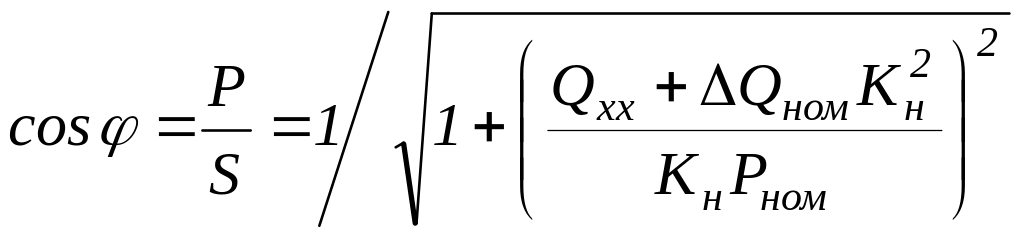 Враховуючи (1.11), коефіцієнт потужності асинхронного двигуна визначається коефіцієнтом навантаження КН та визначається за формулою: