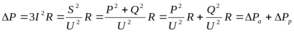 передача реактивної потужності викликає додаткові втрати активної потужності в усіх елементах системи електропостачання зумовленої завантаженням їх реактивною потужністю: