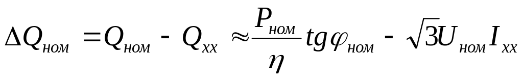 Для поточного значення навантаження асинхронного двигуна (Р<Рном) приріст реактивної потужності, у порівнянні і холостим ходом, пропорційний квадрату коефіцієнта навантаження двигуна: