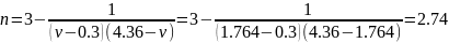 Коэффициент n определяется в зависимости от значения вспомогательного параметра ν.