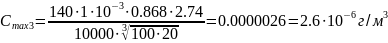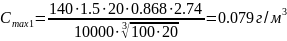 Максимальная приземная концентрация Cmax(мг/м3) вредных веществ при выбросе нагретой газовоздушной смеси из одиночного точечного источника (трубы) с круглым устьем при неблагоприятных метеорологических условиях определяется из следующего выражения: