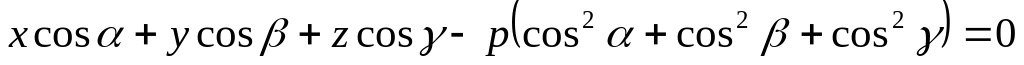 (1) теңдеуі жазықтықтың нормаланған теңдеуі деп аталады. Бұл теңдеуде х,у және z айнымалыларының коэффициенттері жазықтықтың бірлік нормальдық векторының координаталары болады, ал бос мүше /-р/ «минусң таңбасымен алынған координаталар бас нүктесінен жазықтыққа дейінгі қашықтыққа тең.