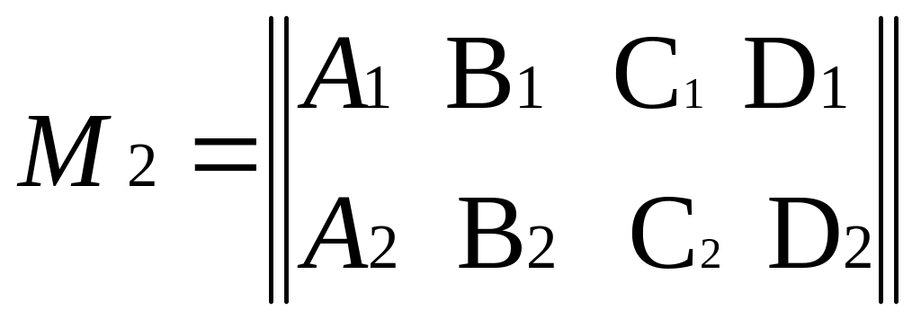 Екі жазықтықтың қиылысқан нүктелерінің жиындысы (9) осы түзуді береді. Теңдіктің бөлімдеріндегі коэфициенттерден құрылған параметрлерді белгілейік: