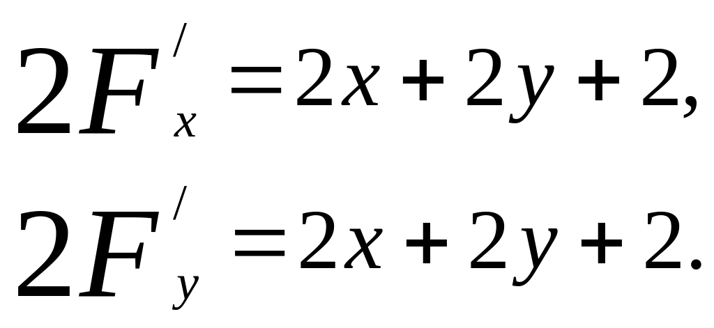 Мұнын сол жағын 2Ғ(х,у)=2Ғ деп белгілеп, оның дербес туындыларын жазайық: