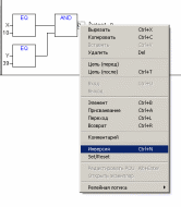 В блоках AND и EQ, где указано по два условия, необходимо сделать инверсный выход. Для этого нажмите на выход блока правой клавишей мыши и выберете команду инверсия.