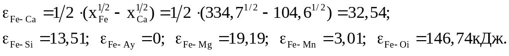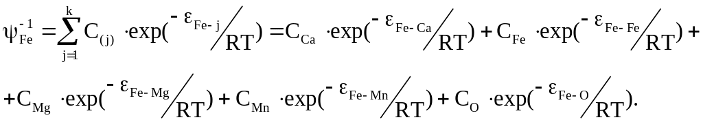 Значение энергий обмена атомов железа и других компонентов шлака находим по уравнению (83):