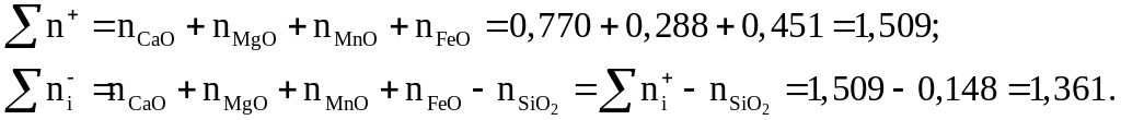 Определяем общее число грамм-ионов катионов и анионов в шлаке: